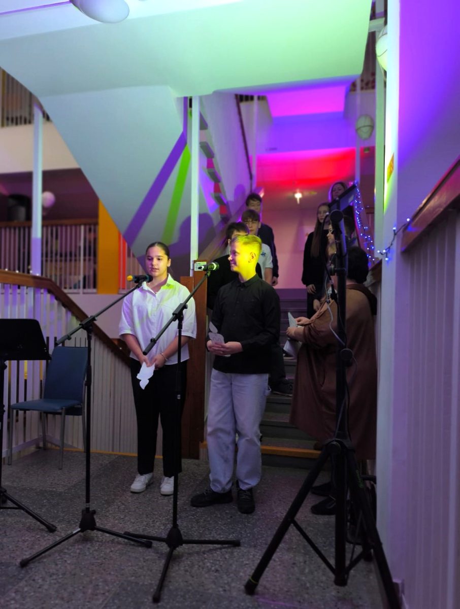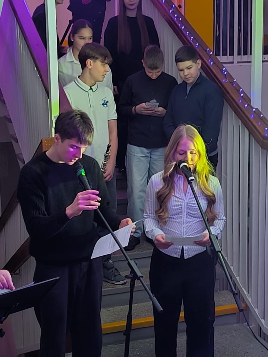 Paldies Emīlam Veļičko par ģitāras solo, Ervīnam Rafailam Ustinskovam par komponēto un izpildīto skaņdarbu obojai, Stefanam Gornam un Milenai Kovaļovai par solo dziesmu "Svece", Santai Marijai Vjaksei, Emīlam Vitkovam, Elzai Korsietei un Emīlam Tihonovam par balss melodiju dzejā un stāstā! Jauniešus uzmundrināja un iedrošināja skolotāji Anita Zarāne un Sandra Rutkovska.
