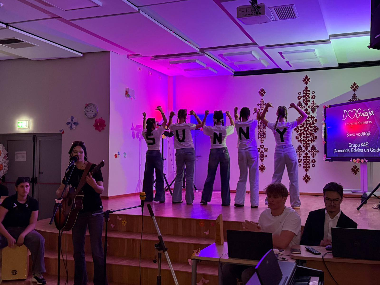 Mācību nedēļa ir noslēgusies ar muzikālu jauniešu iniciatīvu - DVĢvīzija. 12.c klases skolēni, grupas "KAE" dalībnieki Armands Ozuns, Edvīns Lavrinovičs un Kaspars Gaiduks Kultūras pamatu stundā prezentēja darbu, kura pamatā bija izstrādāt kultūras pasākuma projektu. Jaunieši nolēma, ka projektu varētu īstenot arī dzīvē. Šodien jaunieši noorganizēja mūzikas svētkus - DVĢvīziju! Konkursā piedalījās piecas klašu komandas: