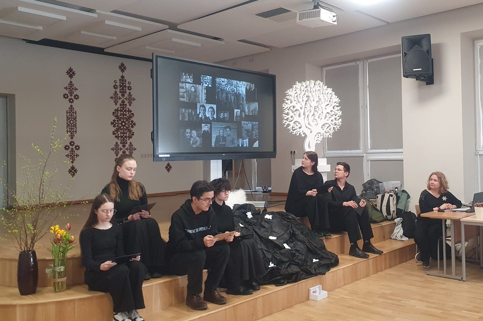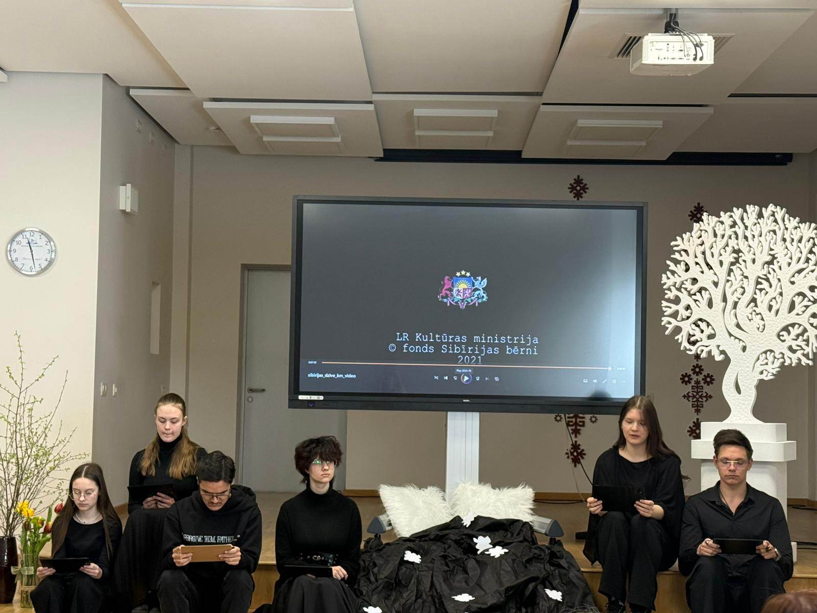 Šodien ģimnāzijā teātra pulciņa "Spēlmanīši" jaunieši kopā ar skolotāju Kristīni dalījās ar Lūcijas stāstu par došanos uz Sibīriju, dzīvi svešā zemē, izdzīvošanu un atgriešanos. Ir ļaudis, kuriem dvēselē puteņo sniegi visu gadu. Ar klusuma brīdi pieminējām bērnus, kuri nepiedzīvoja gadalaikus, viņu sirsniņas sasala un mūžam palika Sibīrijā.