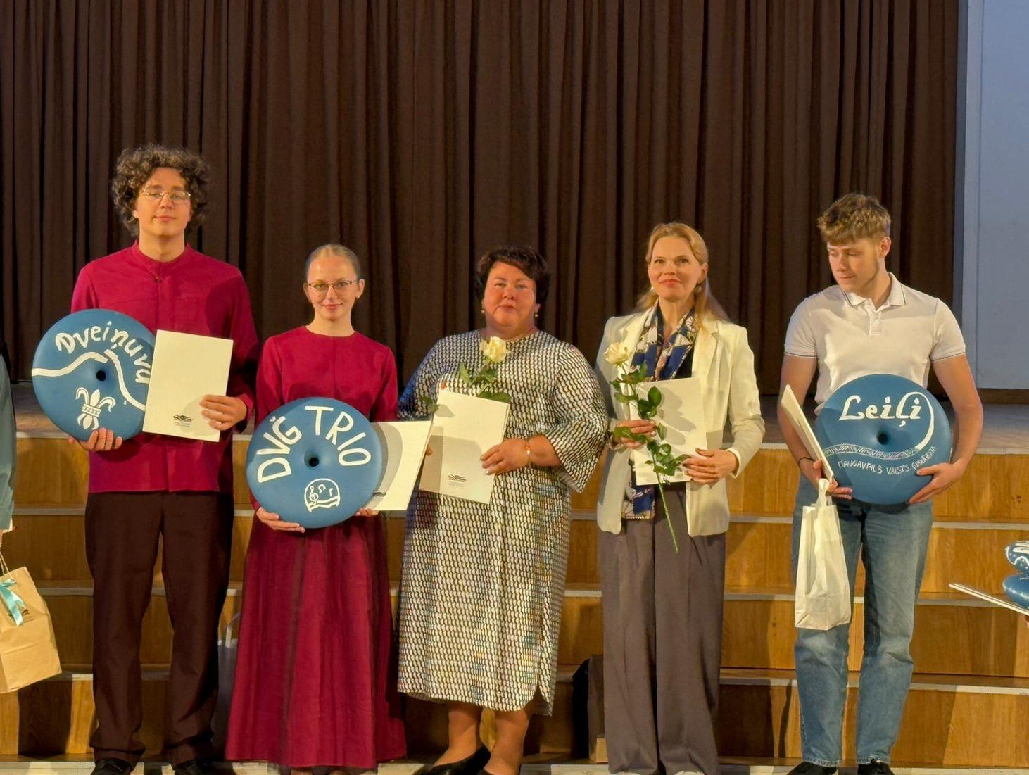 - jauktais koris "Dveiņuva" par iegūto augstāko pakāpi un "Zelta diplomu" XIII Latvijas Skolu jaunatnes dziesmu un deju svētku noslēguma koncerta “TE-AUST” koru repertuāra apguves konkursā,