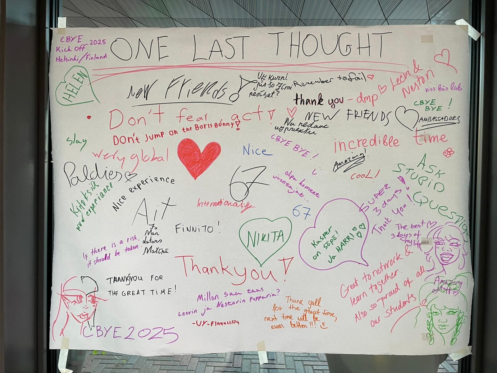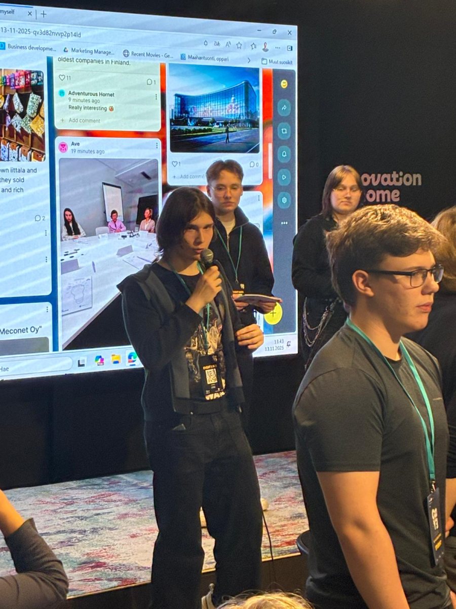 Linda: “Pēcpusdienā mēs, 10. un 11. klases skolēni kopā ar skolotāju Artūru Fišeru, devāmies tālajā ceļā uz Somiju, lai piedalītos Junior Achievement organizētajā pasākumā Central Baltic Young Entrepreneurs 2025.