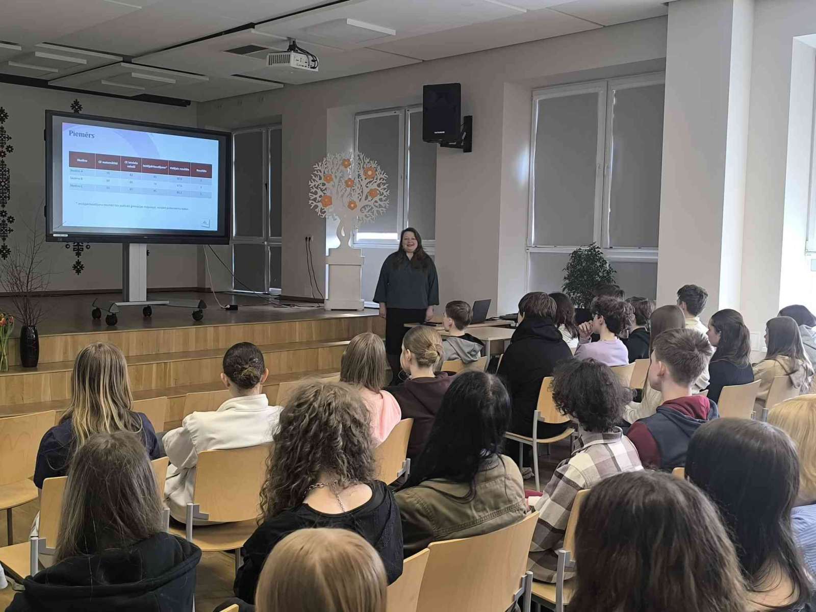 Tikšanās tika organizēta, lai palīdzētu skolēniem atbildēt uz svarīgo jautājumu: “Kur mācīties tālāk?”. Ģimnāzijas direktore Oksana Petaško iepazīstināja ar skolas vērtībām un tradīcijām, kā arī pastāstīja par uzņemšanas noteikumiem un piedāvātajām izglītības programmām. Karjeras konsultante Dace Ozerska skaidroja, kādas turpmākās izglītības un karjeras iespējas paver izvēlētās mācību programmas.
