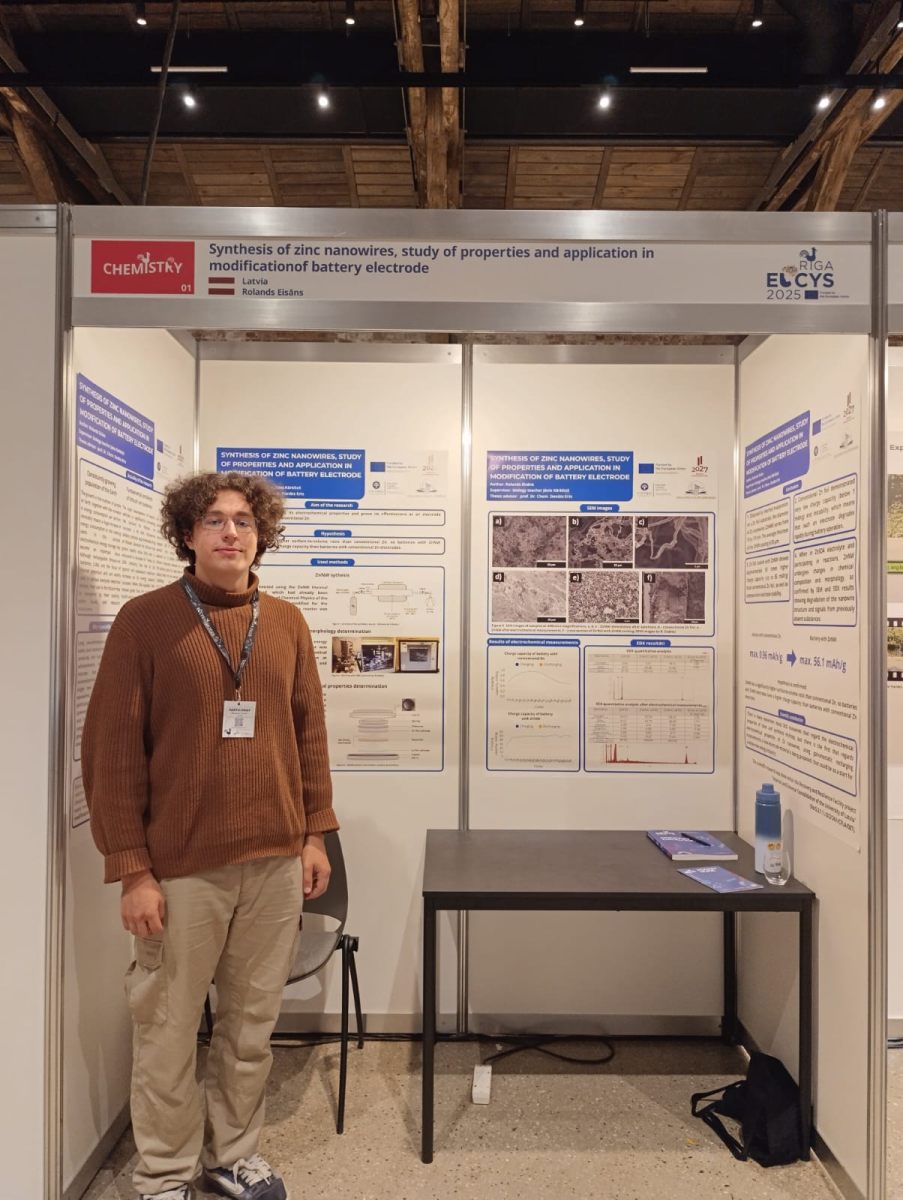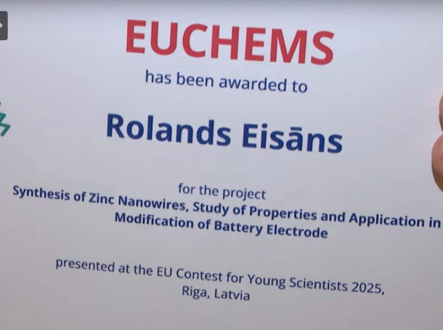 Rolands Eisāns ar projektu ķīmijā “Cinka nanovadu sintēze, īpašību pētīšana un to pielietojums baterijas elektroda modifikācijā” saņēma