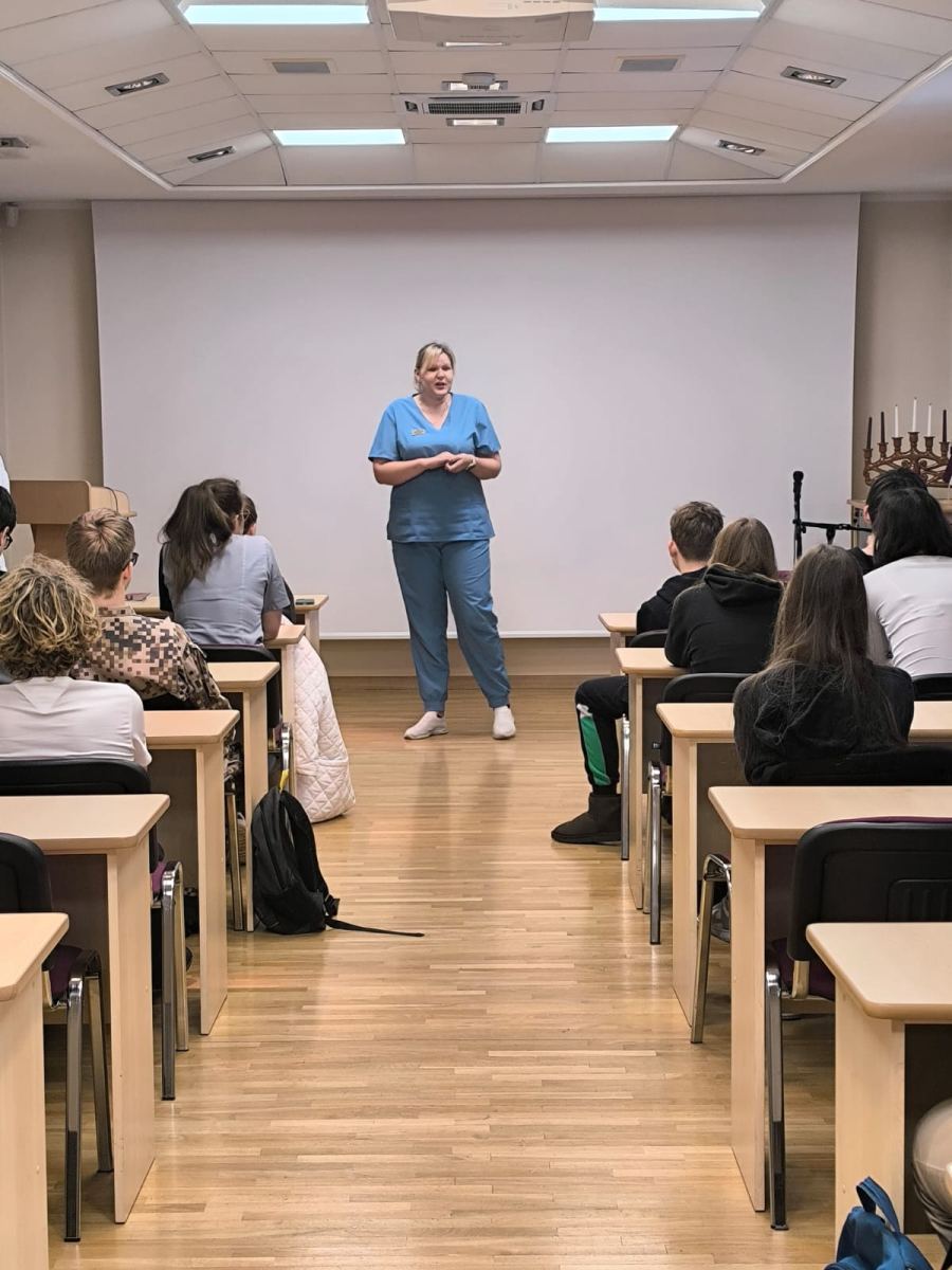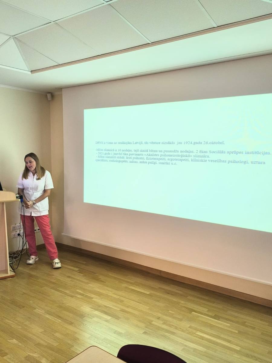 Mūsu klasei šī vizīte bija īpaši vērtīga un izzinoša. Mums bija iespēja tuvāk iepazīt vairākas slimnīcā pārstāvētas profesijas – audiologopēdu, fizioterapeitu, medmāsu, uztura speciālistu un ergoterapeitu. Speciālisti dalījās pieredzē par savu ikdienas darbu, izaicinājumiem un prasmēm, kas nepieciešamas, lai veiksmīgi darbotos šajā jomā, kā arī pastāstīja par studiju iespējām Latvijā.