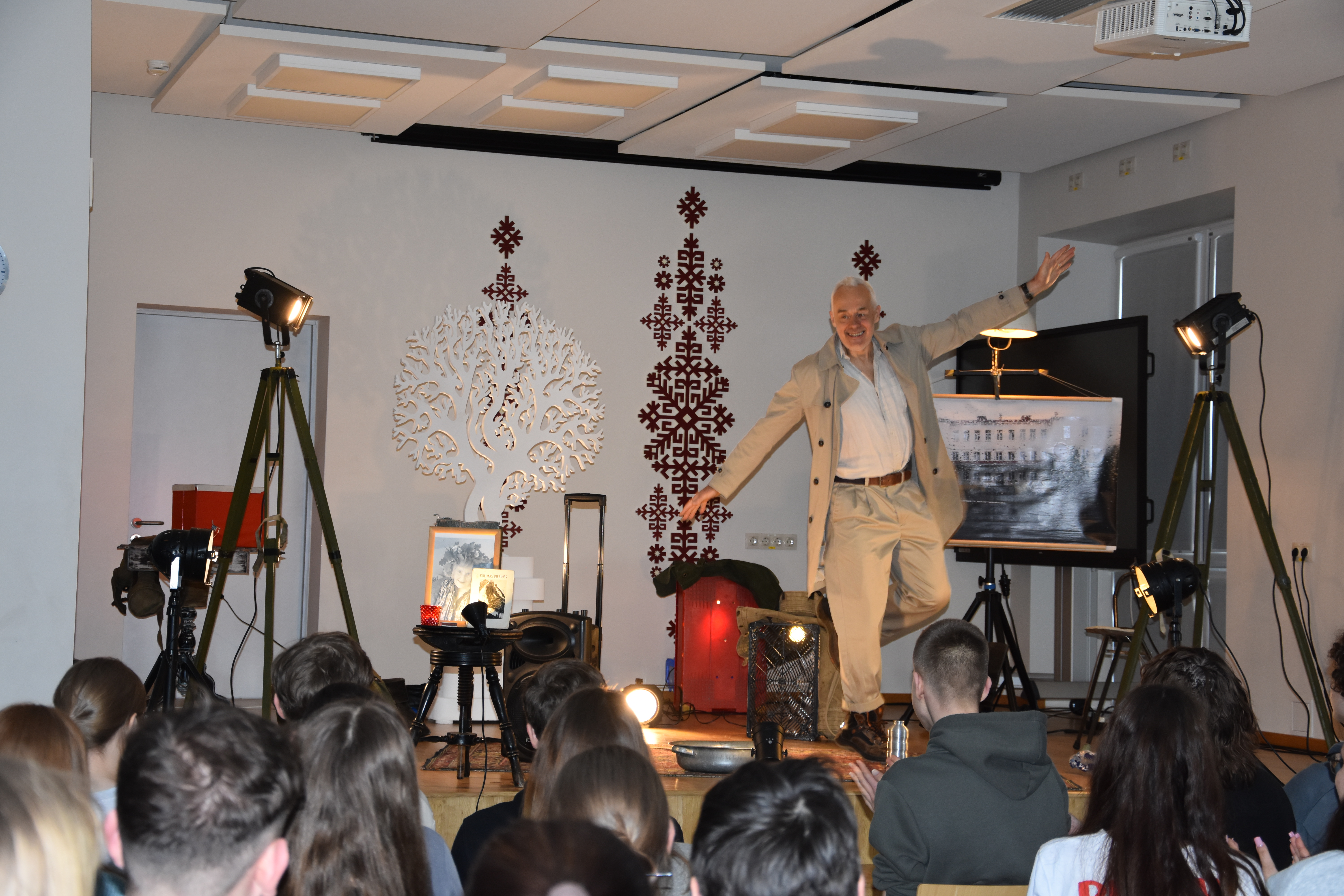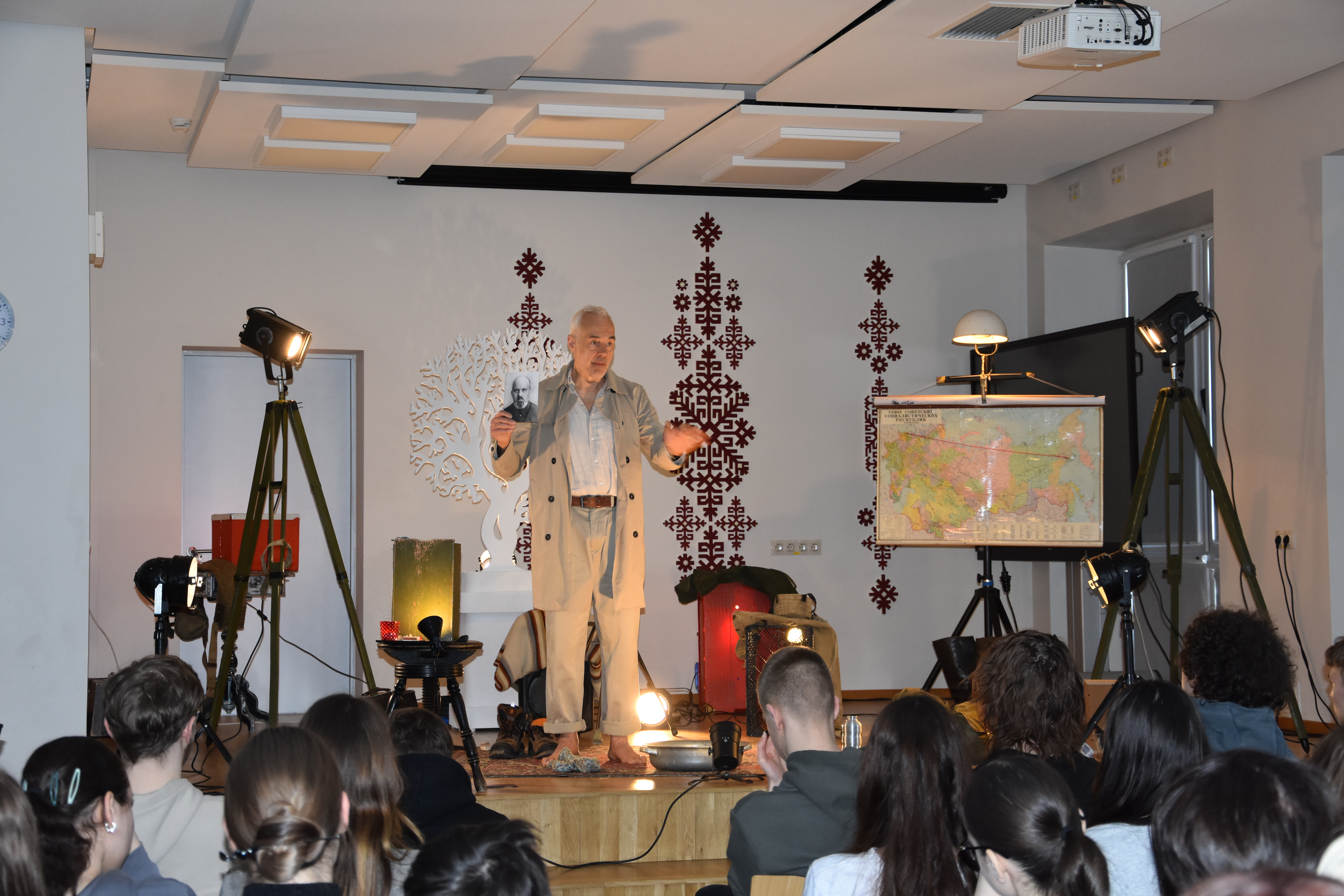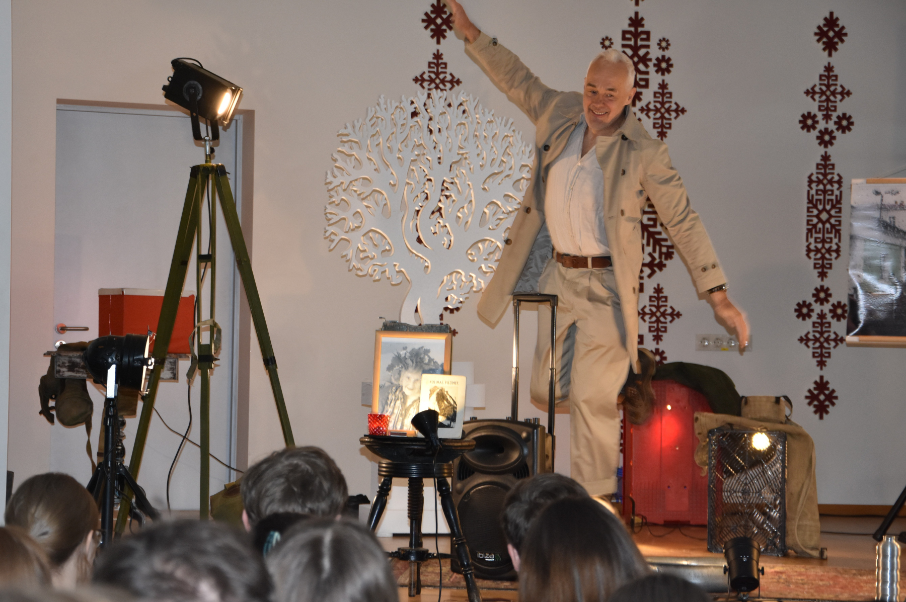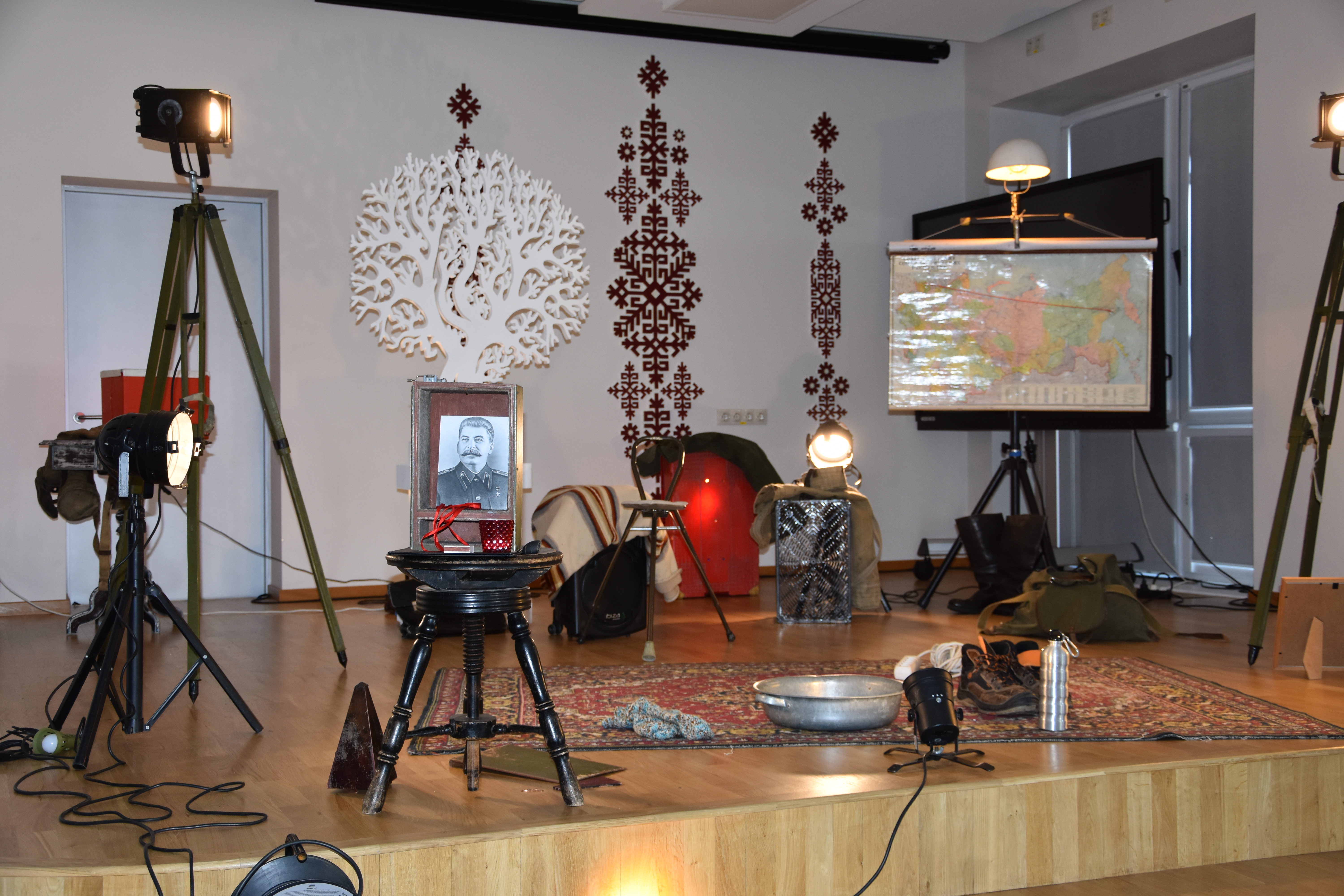 Dainis: Patika skatuves noformējums (fotogrāfijas, karte, lampa). Ļoti laba dikcija.