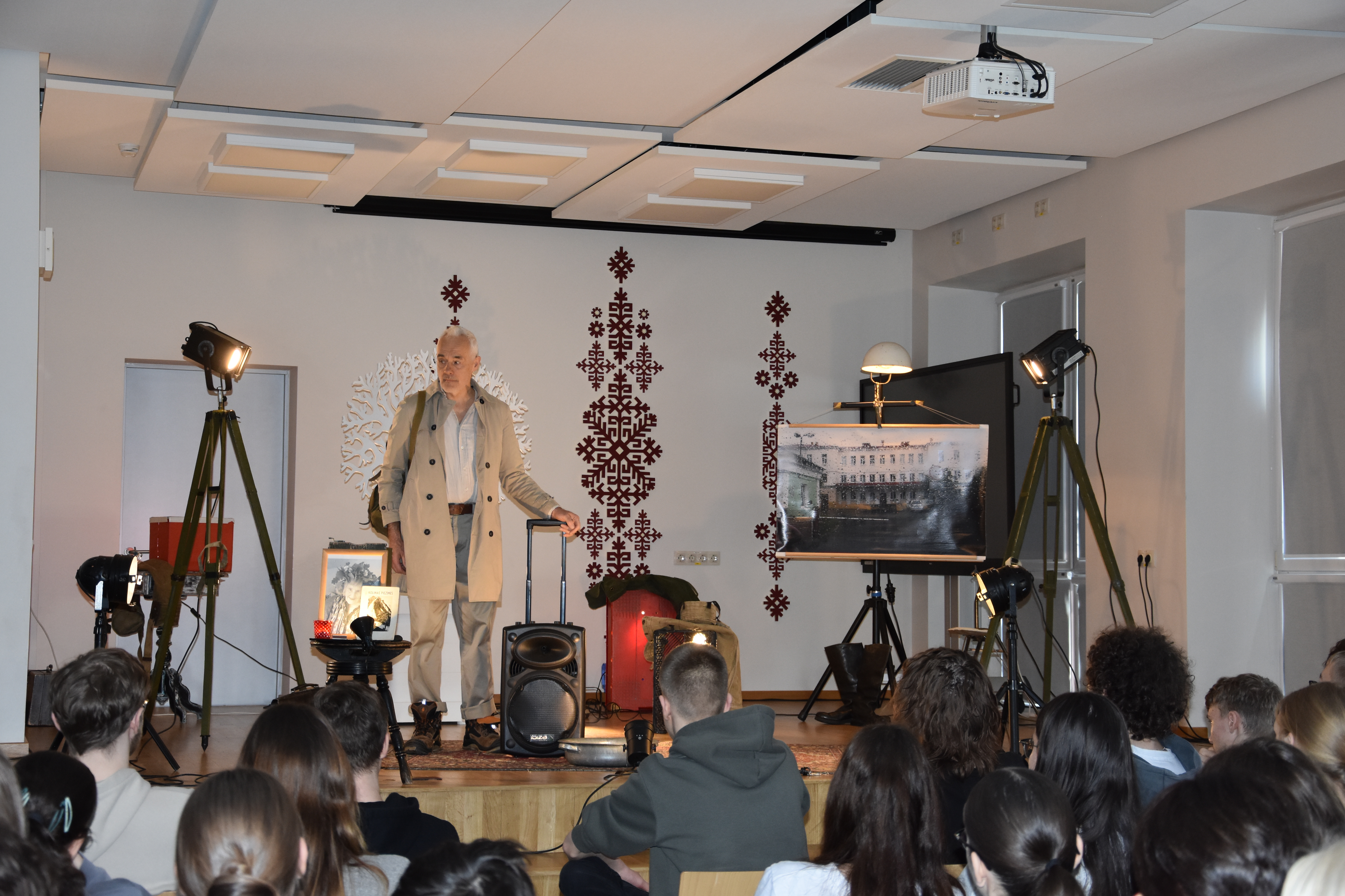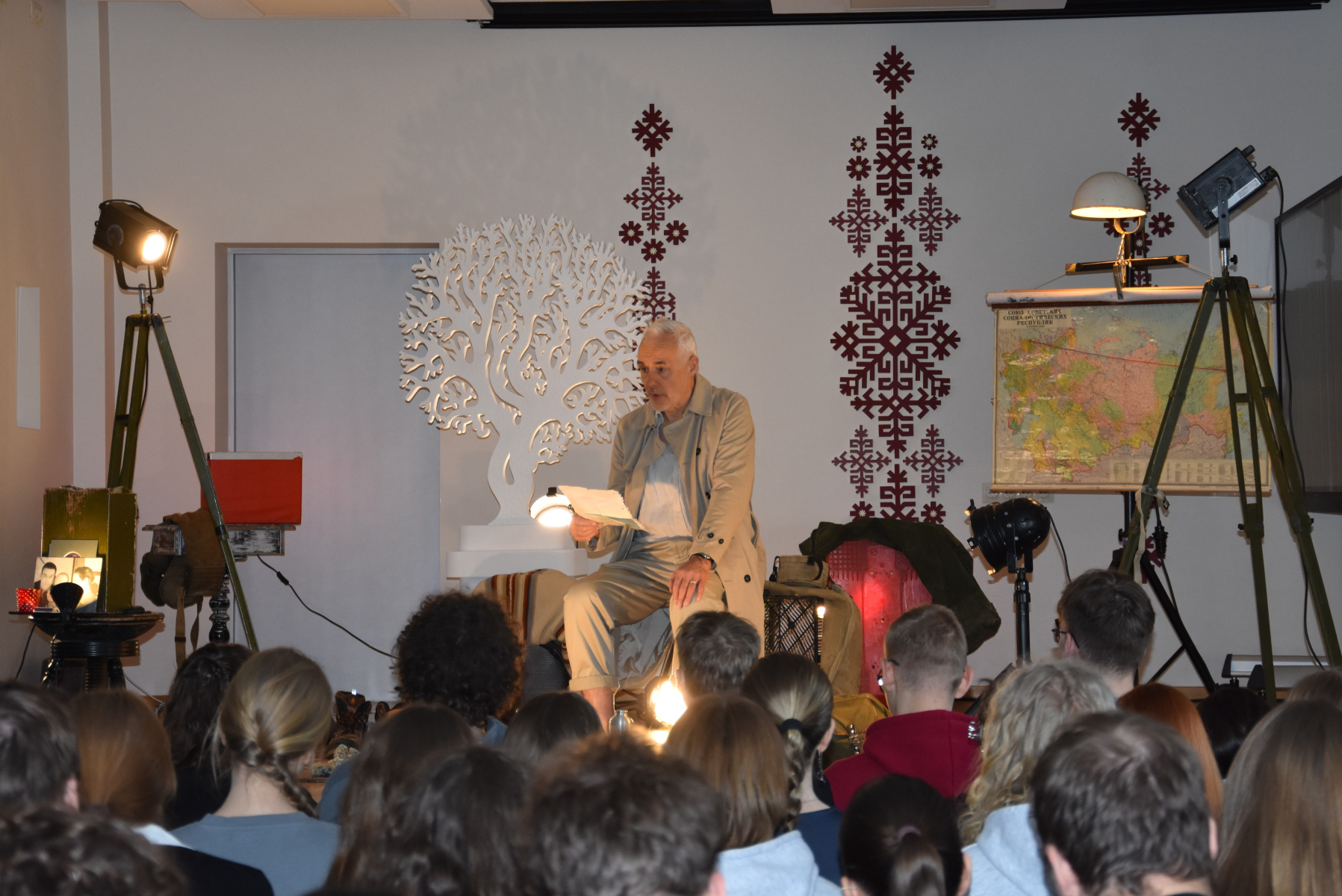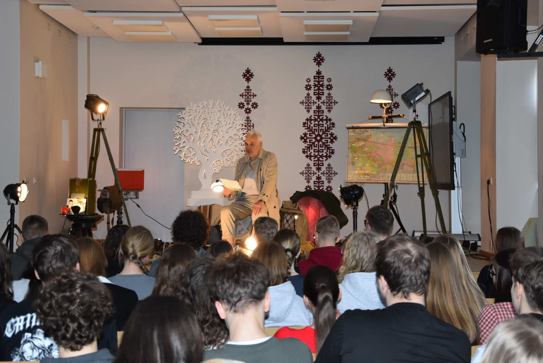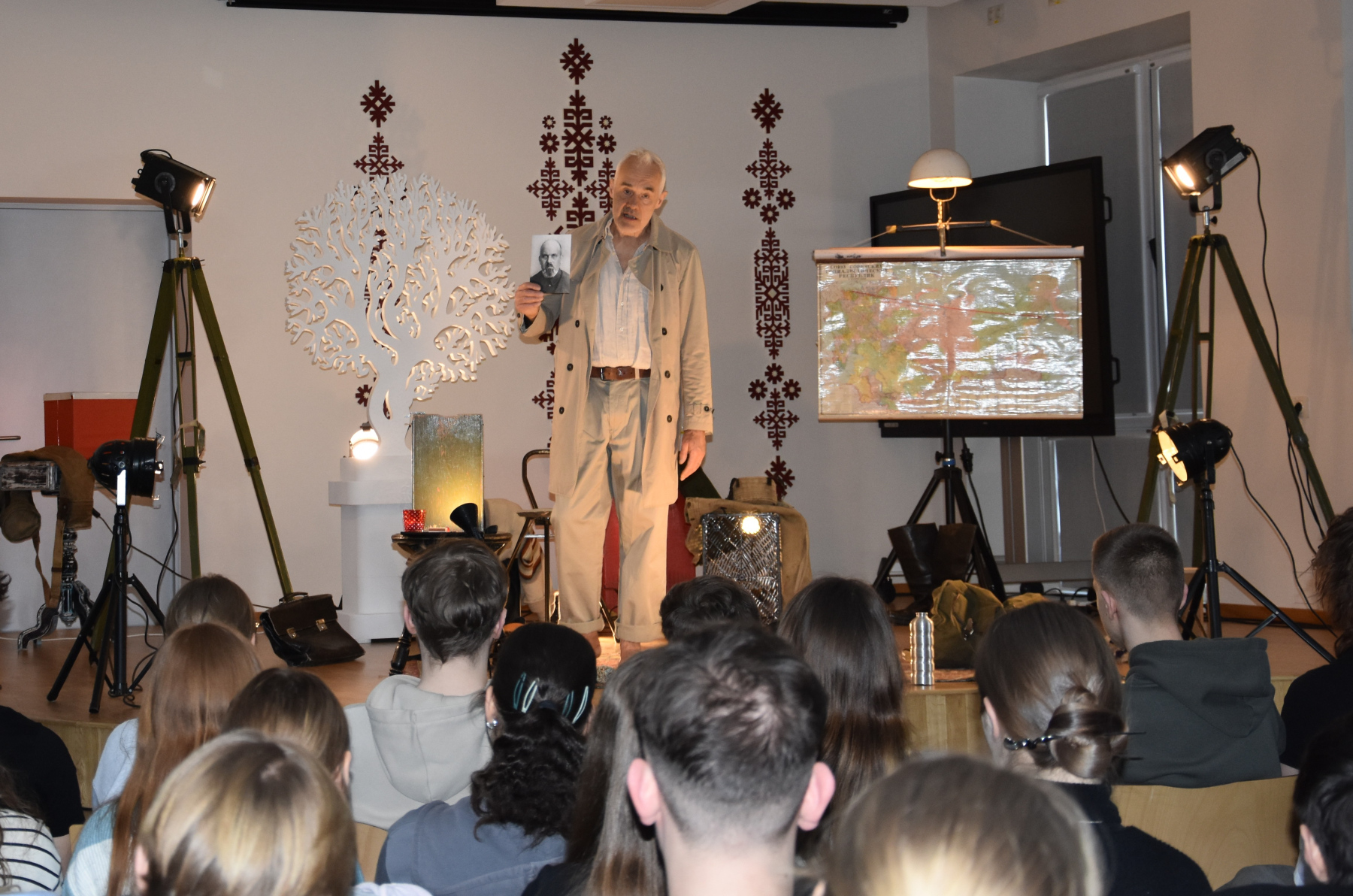 Dainis: Patika skatuves noformējums (fotogrāfijas, karte, lampa). Ļoti laba dikcija.