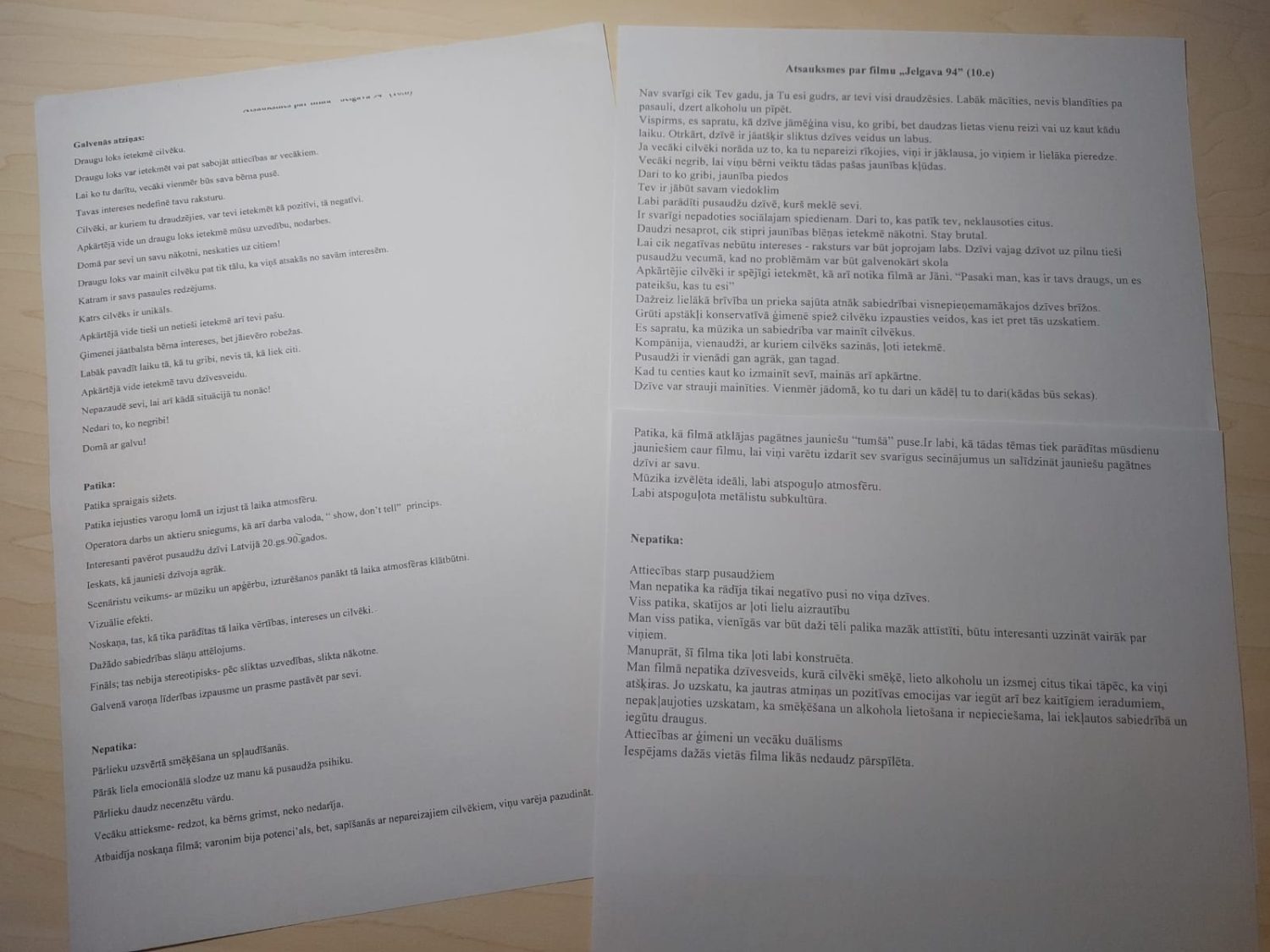 Latviešu valodas stundās skolēni analizēja valodas līdzekļu izmantojumu romāna "Jelgava 94" fragmentos, pēc tam viņiem bija iespēja vērot un analizēt verbālo un neverbālo valodas līdzekļu lietojumu filmā.