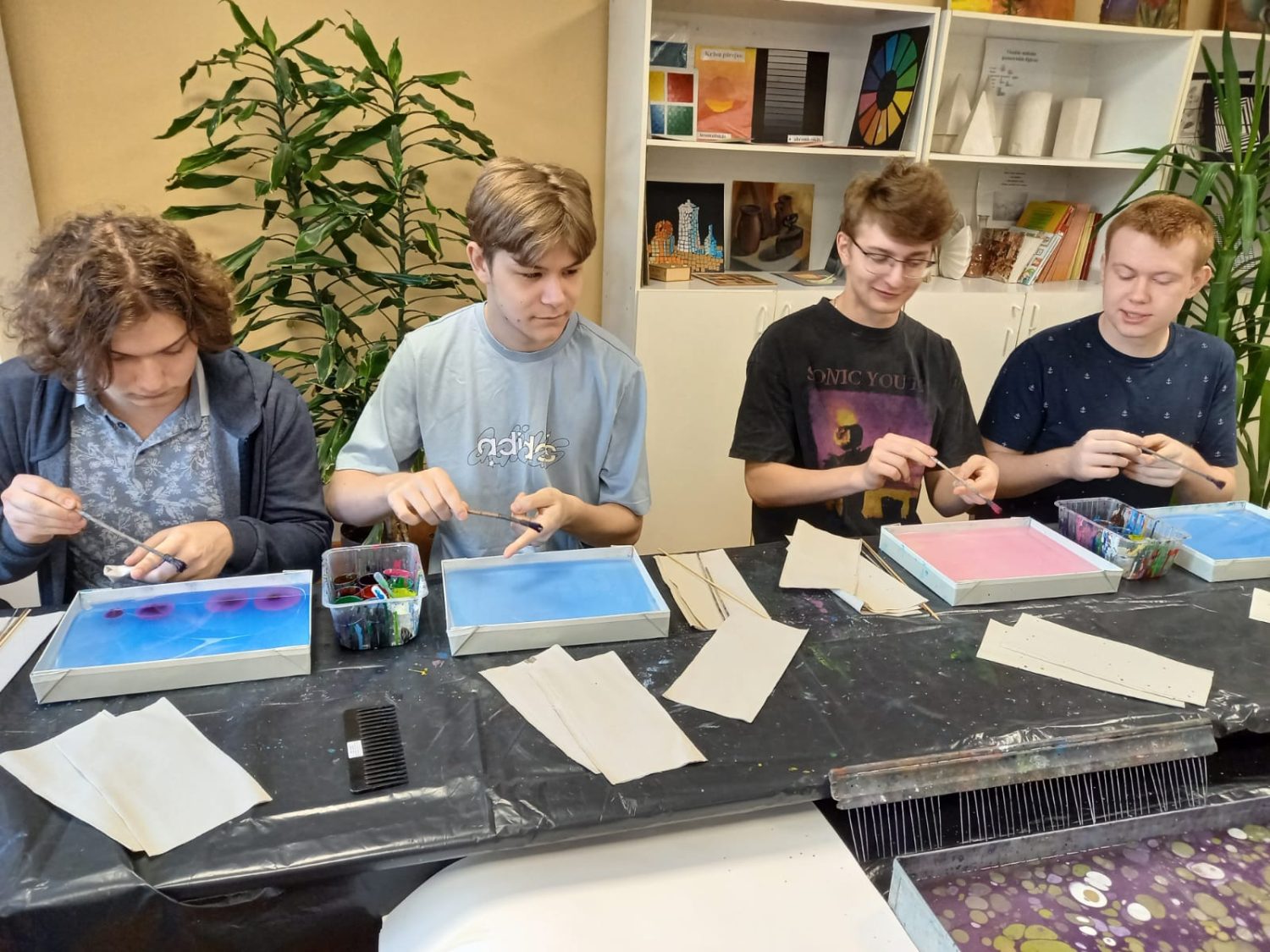 “Pasākuma laikā man bija iespēja izmēģināt šo mākslas tehniku, veidojot savas gleznas. Gleznošanas nodarbība notika vizuālās mākslas kabinetā, kurā mūsu klasei jau sen nebija nodarbību, tāpēc man bija patīkami uz brīdi atgriezties šajā kabinetā. Skolēniem tika iedots trauks ar speciālu sabiezinātu ūdeni un īpašas krāsas, kā arī otas. Māksliniece mums pastāstīja par tehnikas vēsturi un būtību un demonstrēja gleznošanas procesu. Šī pieredze bija jauna, jo šobrīd es interesējos par dažādiem dizaina virzieniem, un, izmēģinot šo glezniecības tehniku, es varēju radoši izpausties. /Einārs Kristers/