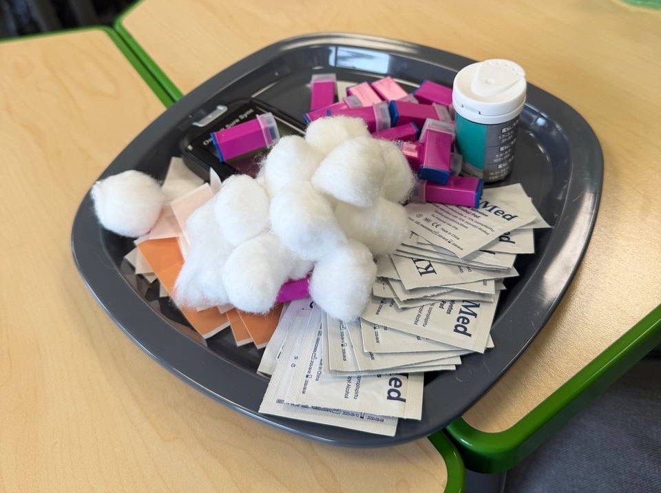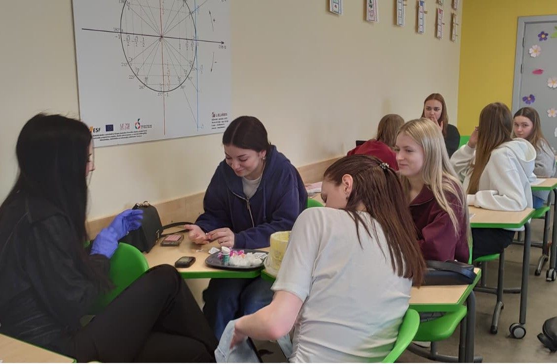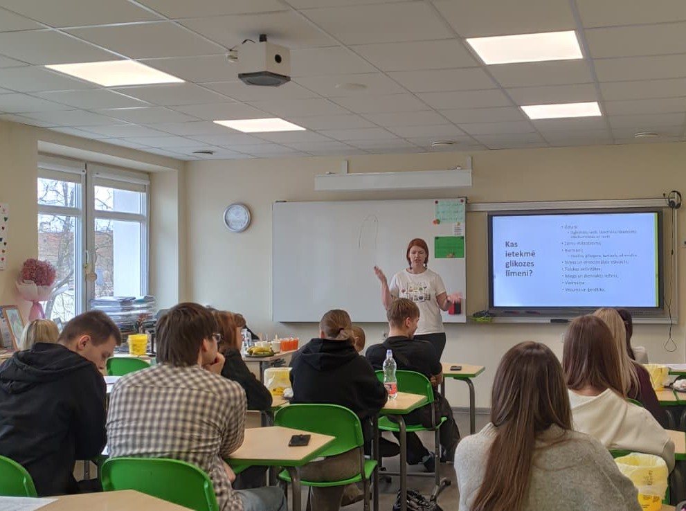Praktiskās daļas ietvaros notika eksperiments ar glikometru, katram bija iespēja izmērīt glikozes līmeni asinīs pirms ēšanas un pēc kāda no piedāvātajiem produktiem vairākas reizes ar 15 minūšu intervālu. Tāpat skolēni uzzināja par diabēta riskiem un veselīga uztura nozīmi.