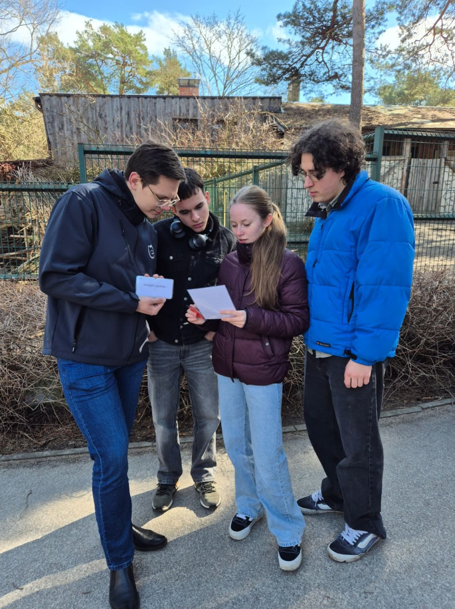 Stāsta Aleksandra Čepuļonoka un Laura Dambe: Lai izbaudītu pēdējos mirkļus kopā, 12.bc klases kopā ar klases audzinātājām Svetlanu Proščinko un Irinu Fjodorovu devās uz Rīgas Nacionālo zooloģisko dārzu, lai piedalītos izglītojošā lomu spēlē “Viena pasaule visiem”, kurā analizējām aktuālas pasaules problēmas.